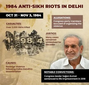 The former Congress MP Sajjan Kumar has been cleared of charges of his alleged links with riot incitement during the anti-Sikh riots in 1984 by a Delhi court on Thursday. This ruling is expected to be viewed as a blow to the families of survivors, who have been pursuing justice for over four decades now. On Thursday, Special Judge Dig Vinay Singh announced the order that acquitted Sajjan Kumar of grave allegations of rioting and promoting communal violence in west Delhi. However, the detailed judgment is yet to be released.