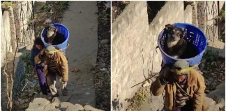 Man Carries Injured Dog Uphill in Basket, Reigniting Faith in Humanity