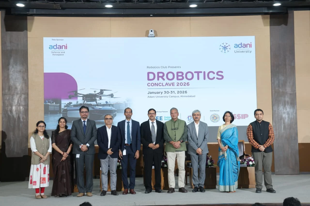 देश में उभरती तकनीकों और भविष्य की इंटेलिजेंस सिस्टम्स को लेकर अदाणी यूनिवर्सिटी, अहमदाबाद में Drobotics Conclave 2026 का भव्य आयोजन किया गया। 30 और 31 जनवरी 2026 को आयोजित इस दो दिवसीय राष्ट्रीय स्तर के कॉन्क्लेव ने रोबोटिक्स, ड्रोन टेक्नोलॉजी, आर्टिफिशियल इंटेलिजेंस (AI) और ऑटोनॉमस सिस्टम्स के क्षेत्र में भारत की संभावनाओं को एक मजबूत मंच दिया। इस आयोजन में देश के अलग-अलग हिस्सों से आए कुल 279 प्रतिभागियों ने हिस्सा लिया, जिनमें शिक्षाविद, इंडस्ट्री एक्सपर्ट्स, स्टार्ट-अप लीडर्स, रिसर्चर्स, पॉलिसी मेकर्स और छात्र शामिल रहे।