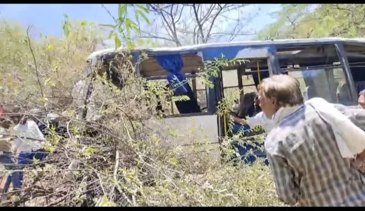 31 सवारियों से भरी बस खाई में गिरी, बच्चे की मौत: अजमेर से पुष्कर जा रही थी