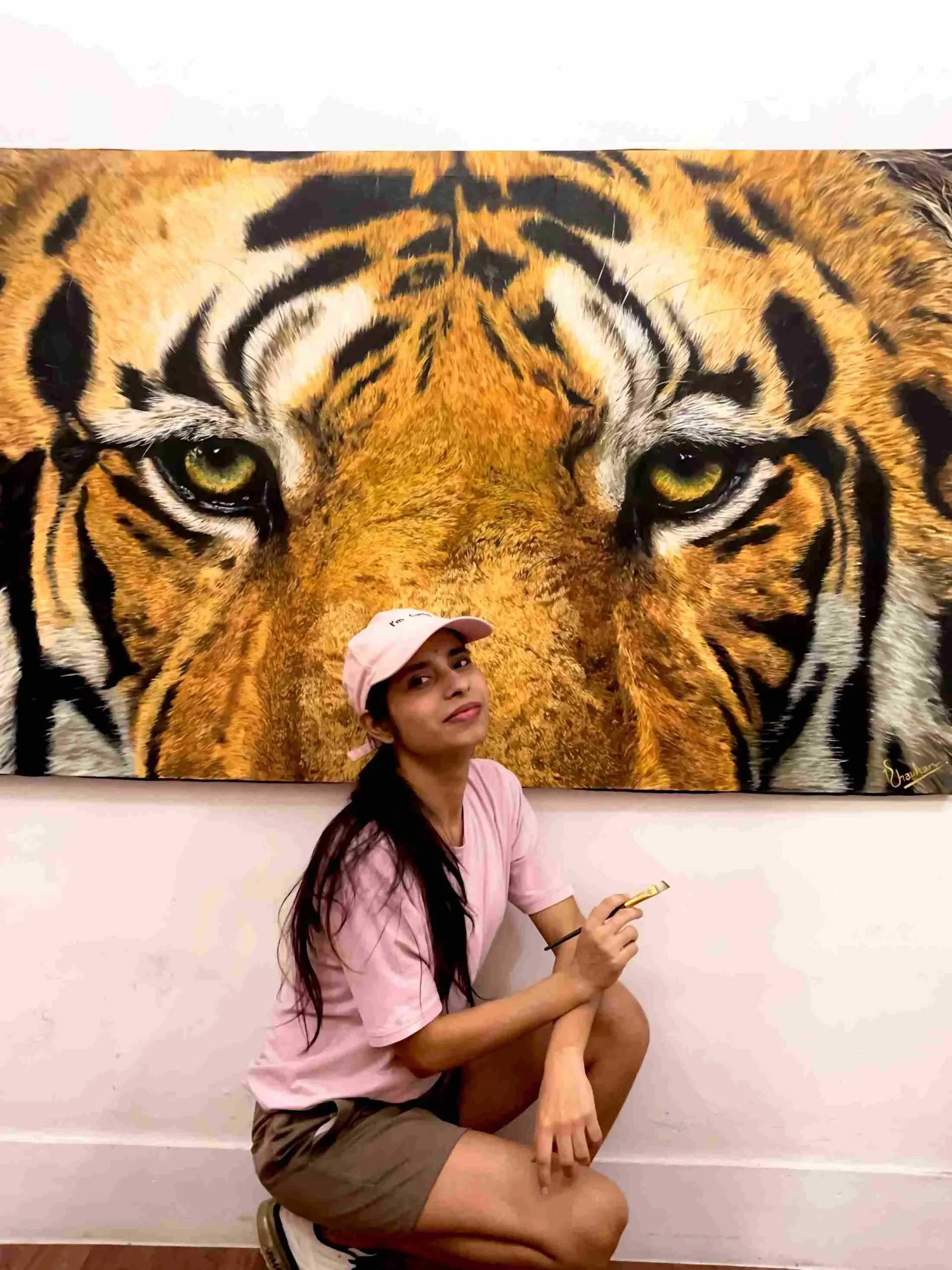 Underlying all this is a deeply human philosophy: empathy. Deeksha believes that art can give voice to the voiceless. Each brushstroke is an act of advocacy, each layer of paint a message. When viewers stand before her work, they aren’t just looking at animals—they are seeing the wild through Deeksha’s eyes, understanding their struggles, and perhaps even feeling compelled to act.