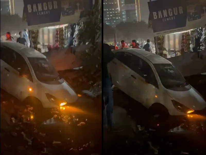 Car Plunges Into Open Drain in Noida’s Sector 70, Sparks Safety Concerns
