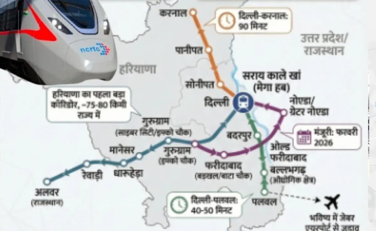 दिल्ली-एनसीआर में हाई-स्पीड सार्वजनिक परिवहन को मजबूत करने के लिए Namo Bharat Rapid Rail के नए कॉरिडोर पर काम तेज हो रहा है। दिल्ली-मेरठ रूट के बाद अब सरकार का फोकस हरियाणा की ओर बढ़ गया है। प्रस्तावित योजना के तहत दिल्ली से फरीदाबाद होते हुए पलवल तक नया रैपिड रेल कॉरिडोर विकसित किया जाएगा, जिससे लाखों यात्रियों की आवाजाही पहले से कहीं अधिक तेज और सुविधाजनक हो सकेगी।