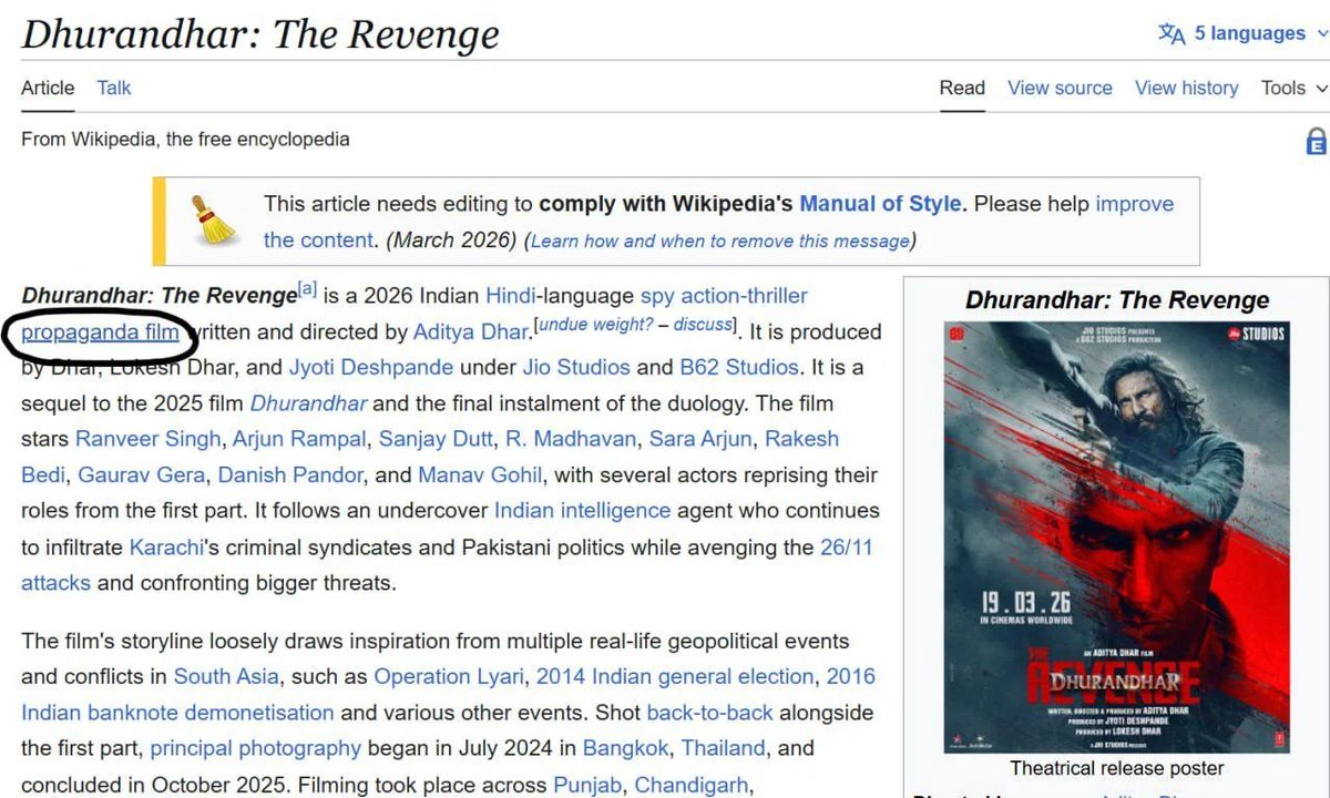 Dhurandhar: The Revenge Sparks Wikipedia Edit War Over ‘Propaganda’ Tag, Jimmy Wales Intervenes