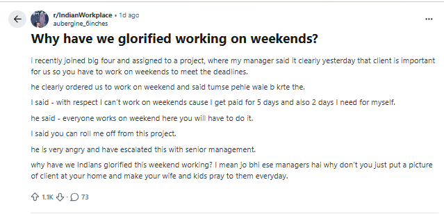 Employee Refusal to Work Weekends Sparks Debate on India’s Corporate Culture