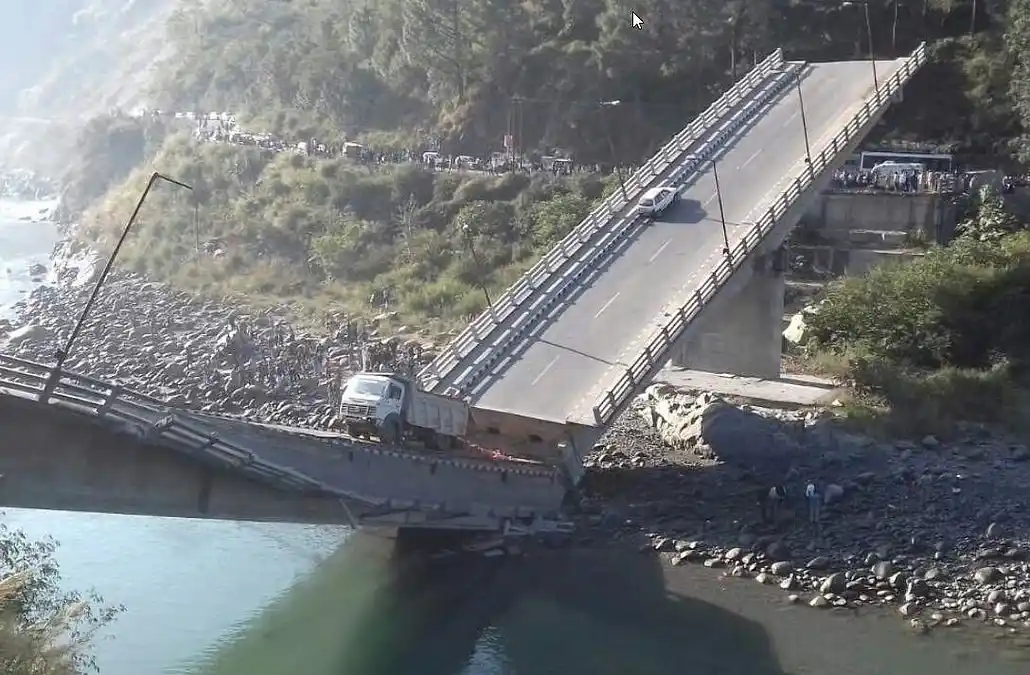 हिमाचल में कुदरत का कहर: हिमाचल में ताश के पत्तों की तरह ढहा निर्माणाधीन पुल, कई गावों का संपर्क टूटा