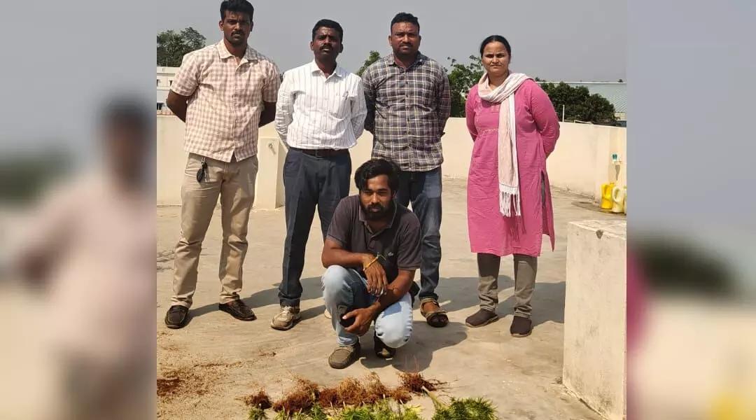A former software engineer was taken into custody on Monday in Hyderabad for allegedly growing cannabis on his terrace. The individual, identified as CH Shashidhar from Nacharam, was apprehended by officials from the Prohibition and Excise Department following a targeted raid.
