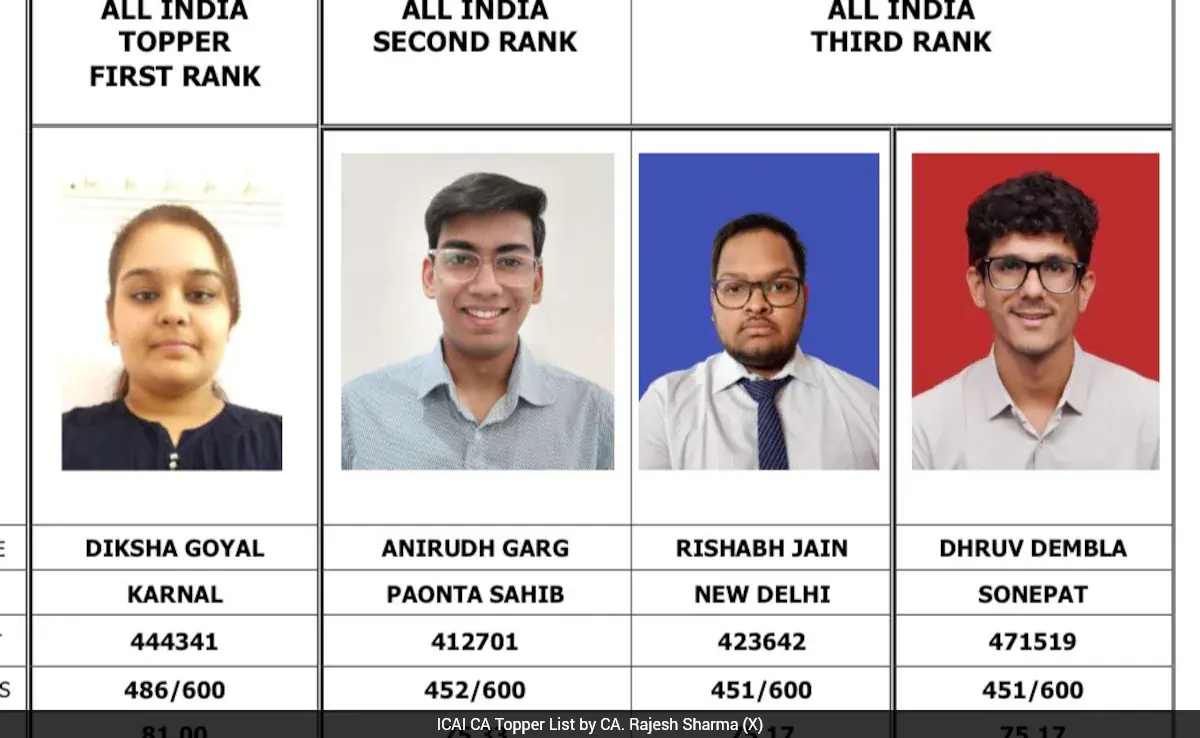 ICAI CA Final Results 2026 Announced: Diksha Goyal Achieves AIR 1; 7,590 Candidates Pass