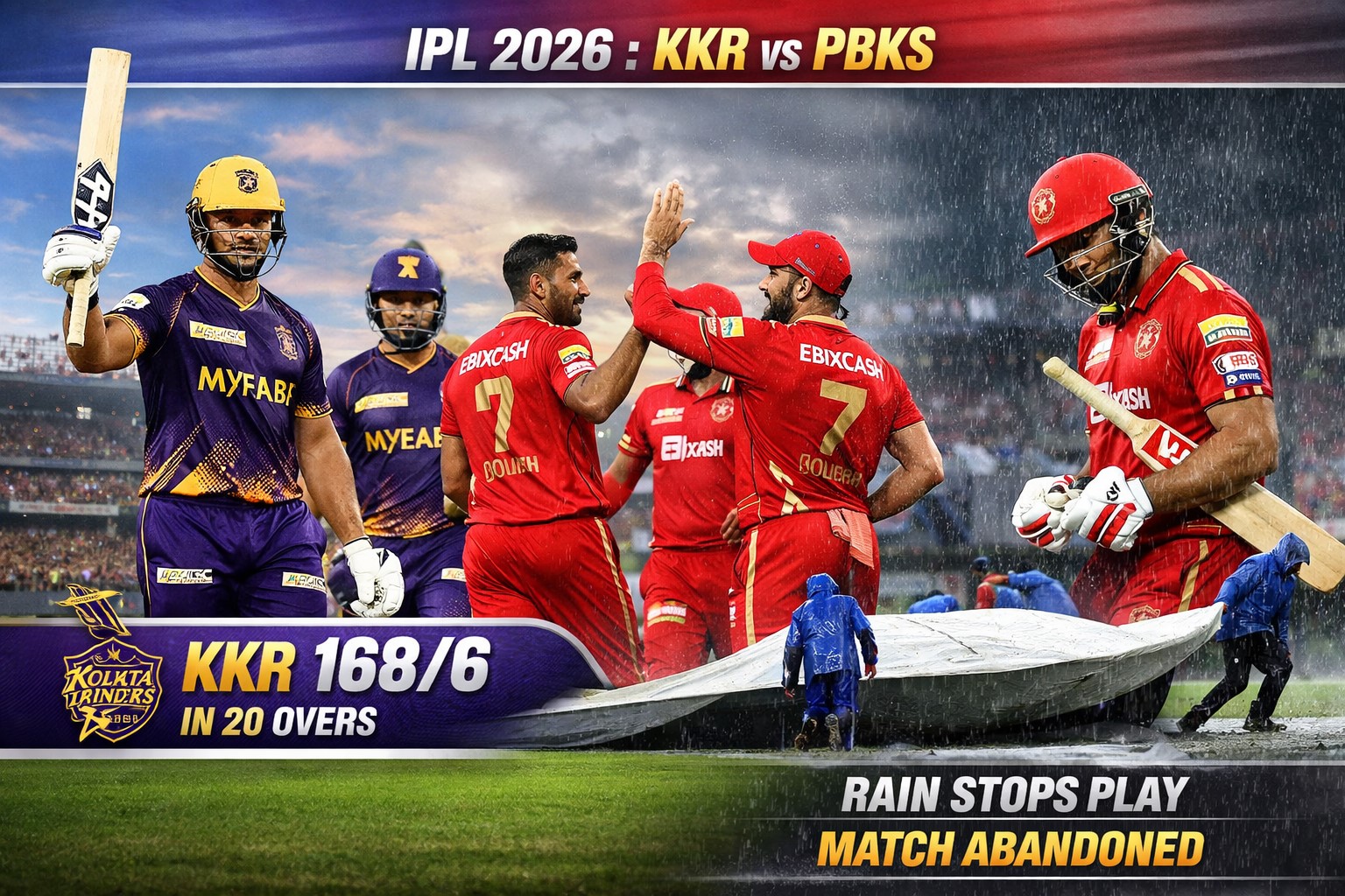 IPL 2026: KKR Win Toss, Post 168/6 Before Rain Forces Match Abandonment