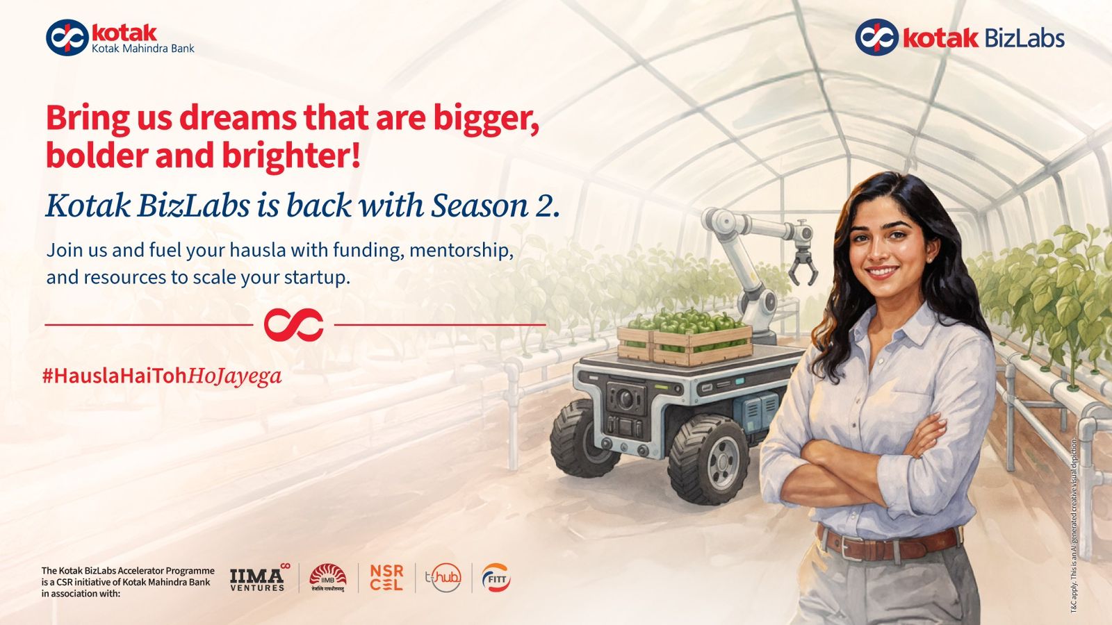 “Kotak BizLabs is our way of walking the talk—it’s a mission to power audacious dreams that can truly shape India’s future,” said Rohit Bhasin, President – Head of Affluent, NRI, and Business Banking and Chief Marketing Officer, Kotak Mahindra Bank Ltd. “We believe that when you back the right ideas with the right intent, magic happens. That’s the spirit of ‘Hausla Hai Toh Ho Jayega’ in action.”