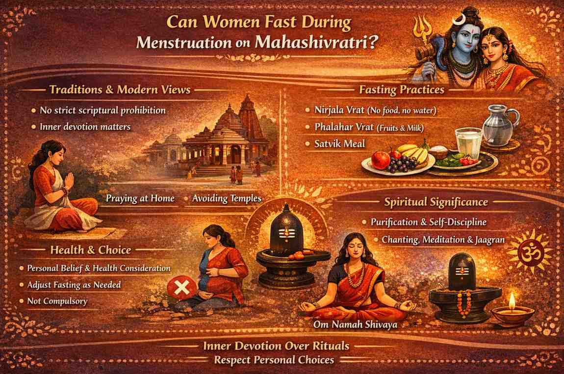 Traditionally, some households in India suggest that women refrain from attending temples or participating in rituals during their menstrual cycle. Nonetheless, there is no comprehensive scriptural prohibition in Hindu texts that outright forbids women from fasting or engaging in prayer while menstruating. Many contemporary spiritual leaders and scholars assert that the true essence of Mahashivratri lies in inner devotion rather than physical rituals. In modern practice, numerous women opt to observe the fast even during menstruation if they feel physically capable. Some may adjust their participation by praying at home instead of visiting temples. Ultimately, the choice to fast during this time is often influenced by personal beliefs, family traditions, and individual health considerations.
