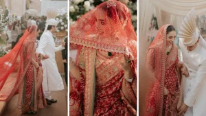 As per the Dawn’s report, the wedding celebrations started from Thursday with a mehendi ceremony at Maryam Nawaz’s home in Lahore. The bride Rohale was seen wearing an emerald green lehenga designed by Sabyasachi. When this information of Sabyasachi designing the lehenga broke, there was a lot of criticism in some sections of Pakistan for selecting an Indian designer over many other popular Pakistani designers. Not only that, Rohale even wore a lehenga designed by an Indian designer for her nikah as well. She was seen in a red Tarun Tahiliani saree and a dupatta for the wedding ceremony.