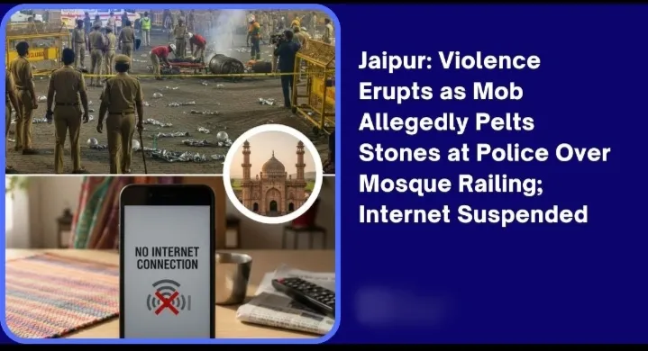राजस्थान की राजधानी जयपुर के चौमूं कस्बे में कलंदरी मस्जिद के बाहर रेलिंग लगाने और अतिक्रमण हटाने को लेकर आधी रात बड़ा बवाल हो गया। हालात उस समय बिगड़े जब कुछ असामाजिक तत्वों ने पुलिस पर पथराव कर दिया। घटना में छह पुलिसकर्मी घायल हुए। स्थिति नियंत्रित करने के लिए पुलिस को लाठीचार्ज और आंसू गैस का सहारा लेना पड़ा। एहतियातन चौमूं में 24 घंटे के लिए इंटरनेट सेवाएं बंद कर दी गई हैं। पश्चिम जिले के DCP हनुमान प्रसाद मीणा ने सख्त कार्रवाई का भरोसा दिलाया है और फिलहाल क्षेत्र में शांति बनाए रखने की अपील की है।