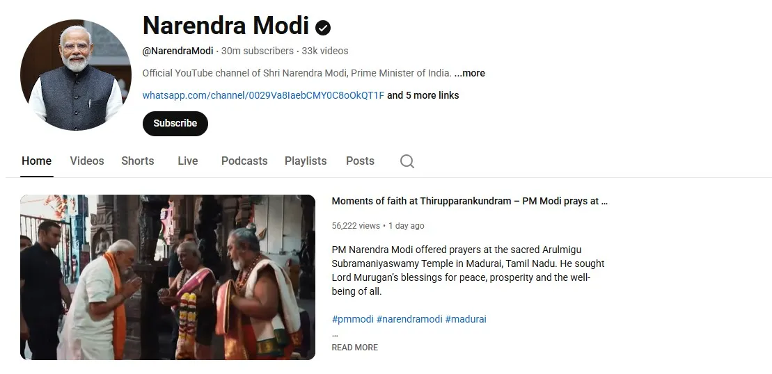 प्रधानमंत्री नरेंद्र मोदी के यूट्यूब सब्सक्राइबर 3 करोड़, ट्रम्प से 7 गुना ज्यादा