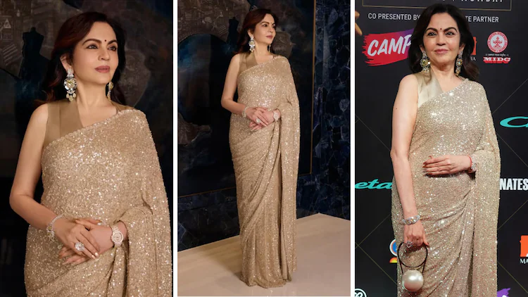 Neeta Ambani Captivates in Esha’s Saree While Handbag Steals the Spotlight