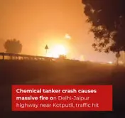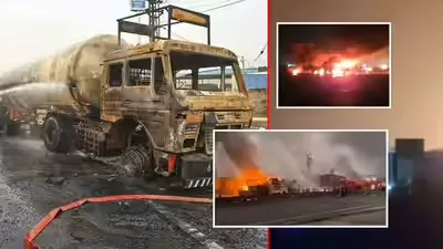 जयपुर–दिल्ली नेशनल हाईवे-48 पर पावटा के पास रविवार रात करीब 8.30 pm एक भीषण सड़क हादसा हुआ। केमिकल से भरे टैंकर के अनियंत्रित होकर ट्रेलर से टकराने के बाद भयंकर आग लग गई, जिसकी चपेट में करीब एक किलोमीटर का इलाका आ गया। इस हादसे ने एक बार फिर इस हाईवे पर लगातार हो रहे गंभीर हादसों और लचर सुरक्षा व्यवस्था को उजागर कर दिया है।