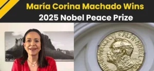 2025 का प्रतिष्ठित Nobel Peace Prize Venezuelan opposition नेता Maria Corina Machado को दिया गया है। यह घोषणा Norwegian Nobel Institute, Oslo से की गई। इस वर्ष कुल 338 nominations आए थे, जिनमें 244 individuals और 94 organizations शामिल थे। अमेरिका के पूर्व राष्ट्रपति Donald Trump भी nominees में थे, लेकिन उनकी जीत की संभावना slim मानी जा रही थी। अन्य प्रमुख contenders में Sudan की Emergency Response Rooms और Committee to Protect Journalists शामिल थे। प्रत्येक पुरस्कार की राशि 11 मिलियन Swedish kronor (लगभग $1.2 million) है और विजेताओं को 10 December को diploma और gold medal प्रदान किया जाएगा।