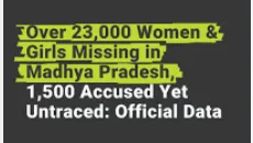 मध्य प्रदेश में महिलाओं और बच्चियों की सुरक्षा को लेकर चौंकाने वाले आंकड़े सामने आए हैं। विधानसभा में पेश सरकारी आंकड़ों के अनुसार राज्य में 23,000 से अधिक महिलाएं और नाबालिग लड़कियां लापता हैं, जबकि बलात्कार और यौन अपराधों से जुड़े 1500 से ज्यादा आरोपी अब भी पुलिस की पकड़ से बाहर हैं।