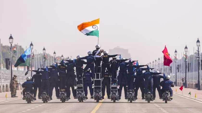 परेड में भारतीय वायुसेना का मार्चिंग कंटिन्जेंट शामिल हुआ, जबकि आसमान में ‘सिंदूर फॉर्मेशन’ ने सभी को रोमांचित कर दिया। इस फॉर्मेशन में दो राफेल, दो सुखोई, दो मिग-29 और एक जगुआर फाइटर जेट ने उड़ान भरी। इसके अलावा स्पेशल फोर्सेस के दस्ते ने अजयकेतु ऑल-टेरेन व्हीकल, रणध्वज रग्ड टेरेन ट्रांसपोर्ट सिस्टम और ध्वंसक लाइट स्ट्राइक व्हीकल के जरिए सेना की त्वरित प्रतिक्रिया क्षमता का प्रदर्शन किया। ड्रोन शक्ति और इंटीग्रेटेड ऑपरेशन सेंटर की झलक ने आधुनिक युद्ध तकनीक में भारत की बढ़त को रेखांकित किया।