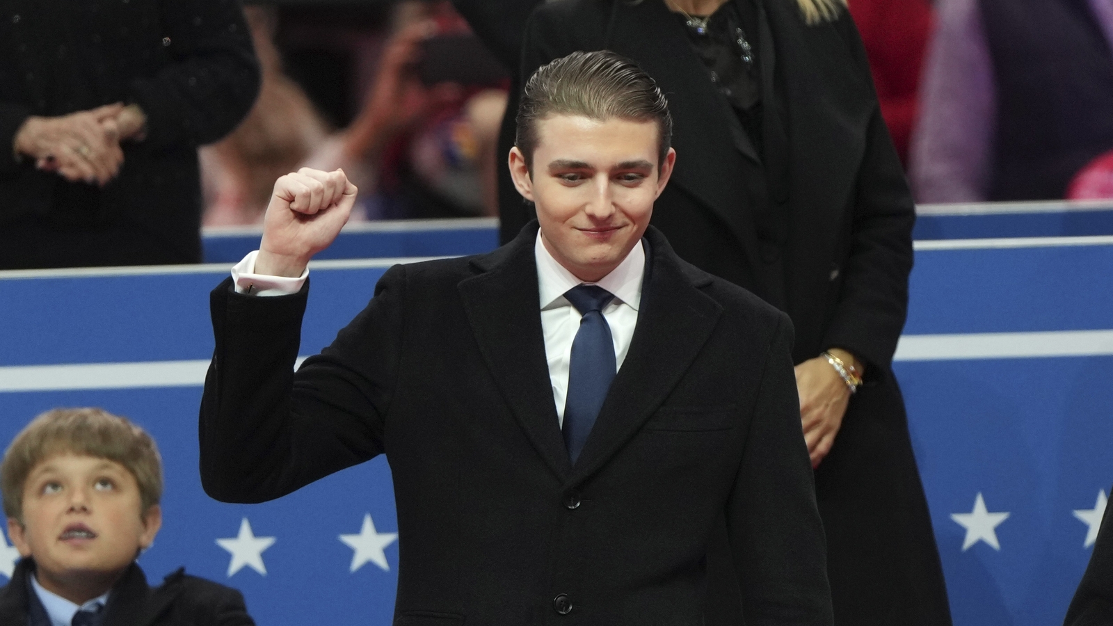 Barron Trump gestures as he arrives at an indoor Presidential Inauguration parade event in Washington, Monday, Jan. 20, 2025. AP/PTI(AP01_21_2025_000054B)