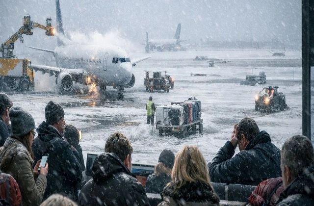 बर्फीले मौसम का सबसे बड़ा असर विमानों की डि-आइसिंग प्रक्रिया पर पड़ा। उड़ान से पहले विमानों के पंखों और शरीर पर जमी बर्फ हटाना अनिवार्य होता है। सीमित डि-आइसिंग संसाधनों और लगातार बर्फ गिरने के कारण कई विमानों को उड़ान की अनुमति मिलने में घंटों लग गए। कई मौकों पर विमान रनवे पर टैक्सी करते हुए लंबे समय तक खड़े रहे, जिससे यात्रियों की परेशानी और बढ़ गई।