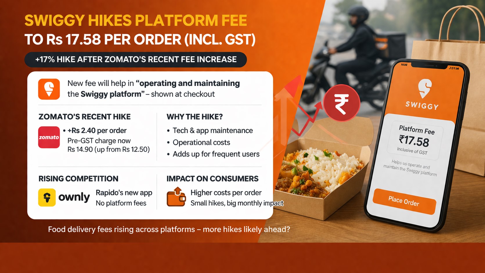 Swiggy Raises Platform Fee to Rs 17.58 Following Zomato’s Lead