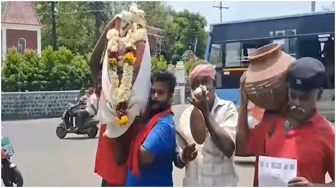 Tamil Nadu Activist Conducts Mock Funeral for LPG Cylinder Amid Supply Concerns