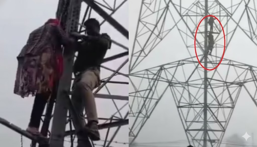 हाई वोल्टेज टावर पर चढ़ने से मची दहशत