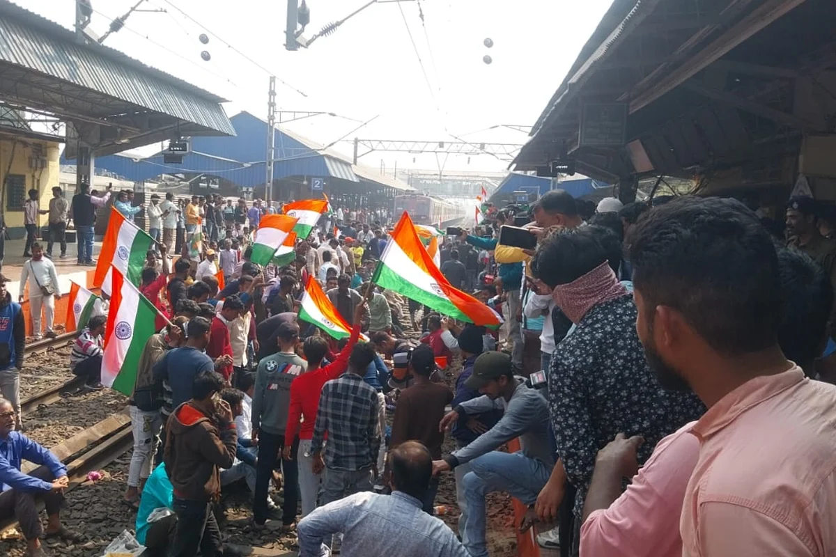 On Saturday, after 11:30 AM, local residents entered the station carrying the national flag. They protested inside the station, leading to chaos. Some protesters lay down on the tracks, causing several trains to be halted.