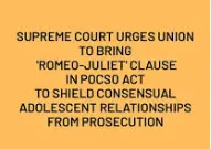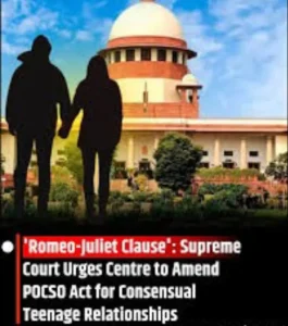 The Romeo-Juliet clause under POSCO Act was first introduced in the United States in 2012, this clause was introduced keeping in mind the unfair criminalisation of Statutory rape, even though both the teenagers were in consensual relationships. Discussion about this clause has started in India as well, Supreme Court has suggested to the Union government to consider the introduction of this clause in the Protection of Children from Sexual Offences (POCSO) Act, so that consensual relationships between adolescents aren’t criminalised. This observation was made by a bench composed of justice Sanjay Karol and justice NK Singh, they made this observation during a hearing related to a bail plea under the POCSO Act.